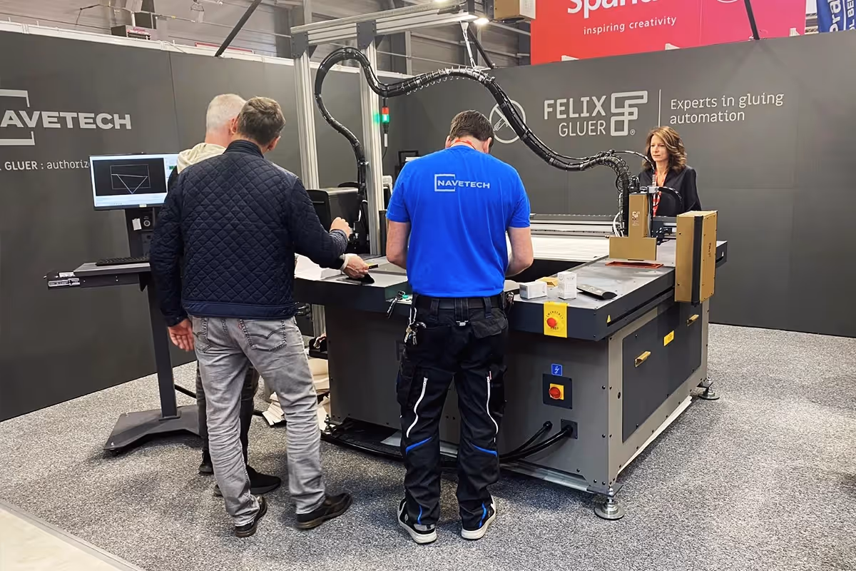 Als ich Felix Gluer traf, wurde mir klar, dass dies ein Produkt ist, das viele Unternehmen haben sollten, wenn sie Klebstoff auf irgendeine Weise auftragen müssen — und viele Leute machen das immer noch manuell. Es ist großartig, einen neuen Partner wie Felix zu haben, der motiviert und leidenschaftlich ist und so eng mit unserem Team zusammenarbeitet.
